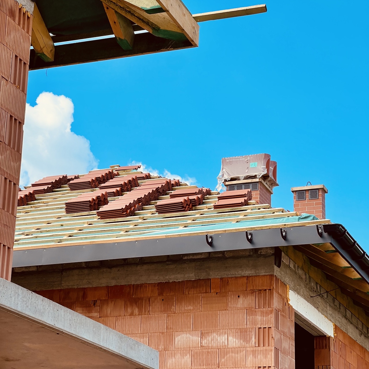 Na ostatnich budynkach trwa montaż więźby dachowej oraz ich pokryć, co oznacza, że już lada dzień, zgodnie z przyjętym harmonogramem prac, inwestycja zyska kolejny kamień milowy!