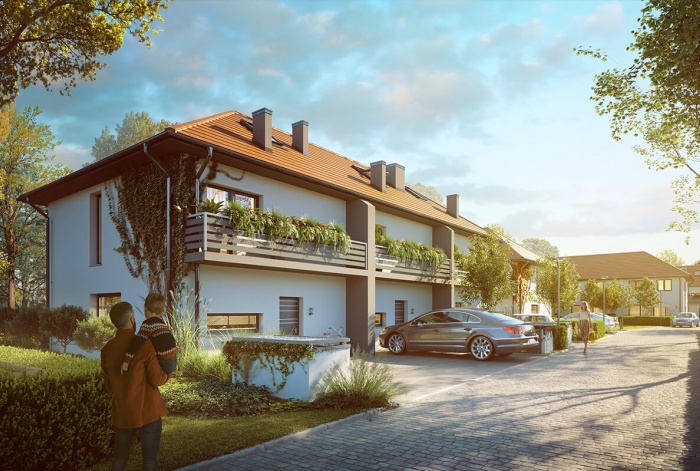 Kameralne osiedle mieszkań w zabudowie dwulokalowej, składające się z 6 lokali mieszkalnych wraz z indywidualnymi ogródkami mieszkaniowymi, wewnętrzną drogą dojazdową oraz osiedlową bramą wjazdową.